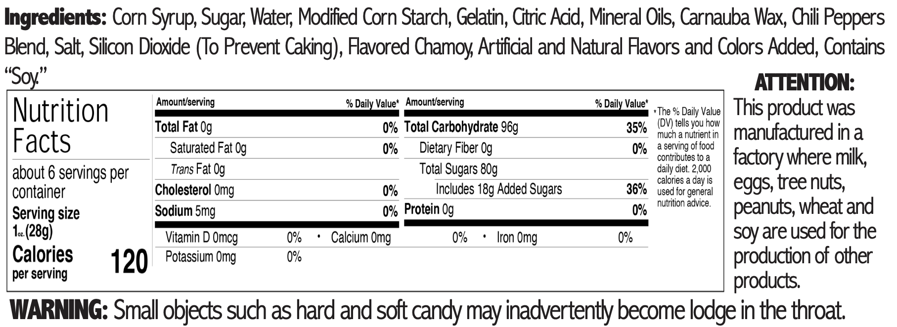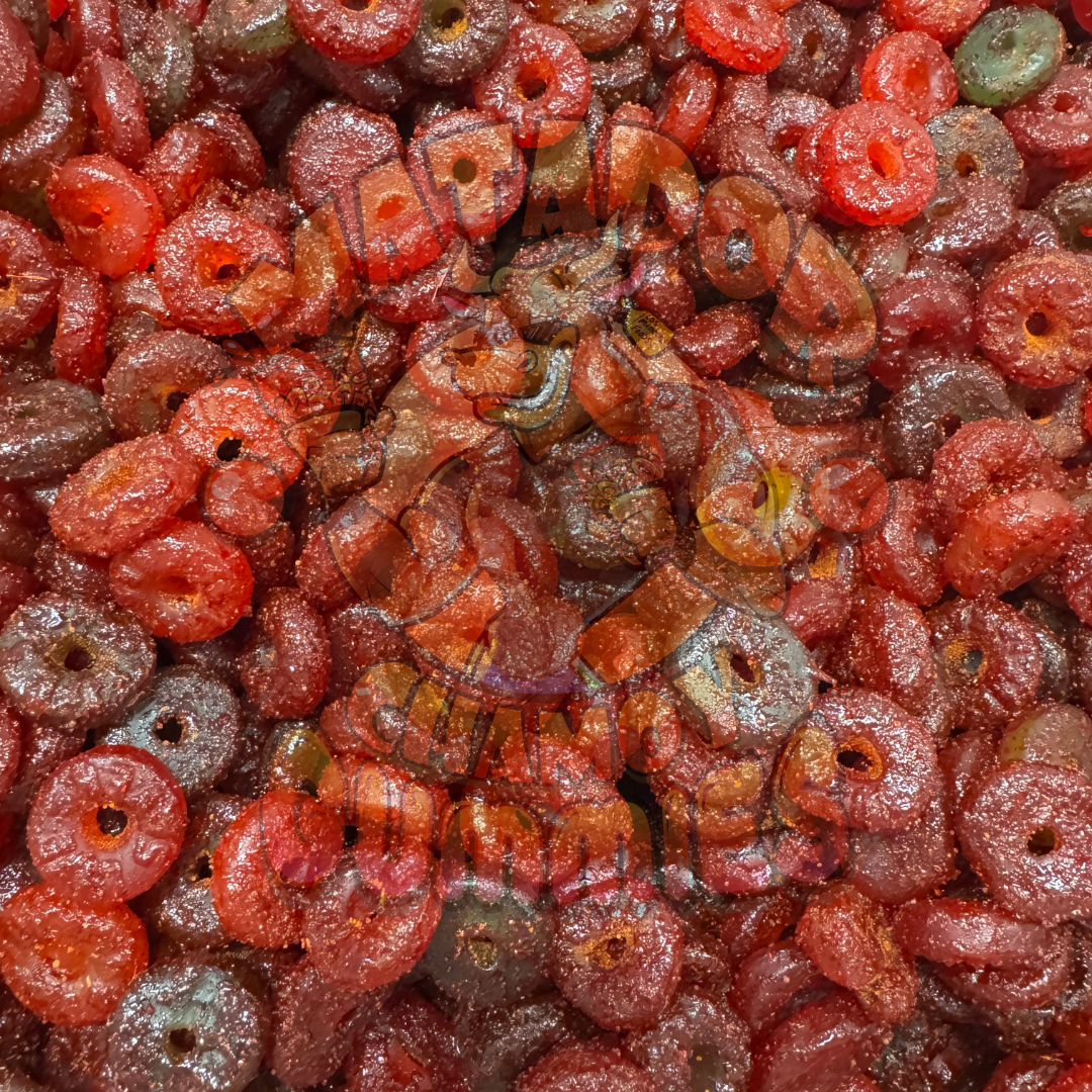 Loopy Loops—a wild, flavorful twist on the classic gummy! These chewy, ring-shaped gummies are fully covered with our unique chamoy and dusted with our own chili powder, delivering an exciting mix of tangy, sweet, and spicy flavors. With every bite, you’ll experience a burst of fruity goodness followed by a bold, spicy kick, making Loopy Loops the perfect treat for those who crave adventure in their snacks, these gummies offer a unique, one-of-a-kind flavor explosion.
