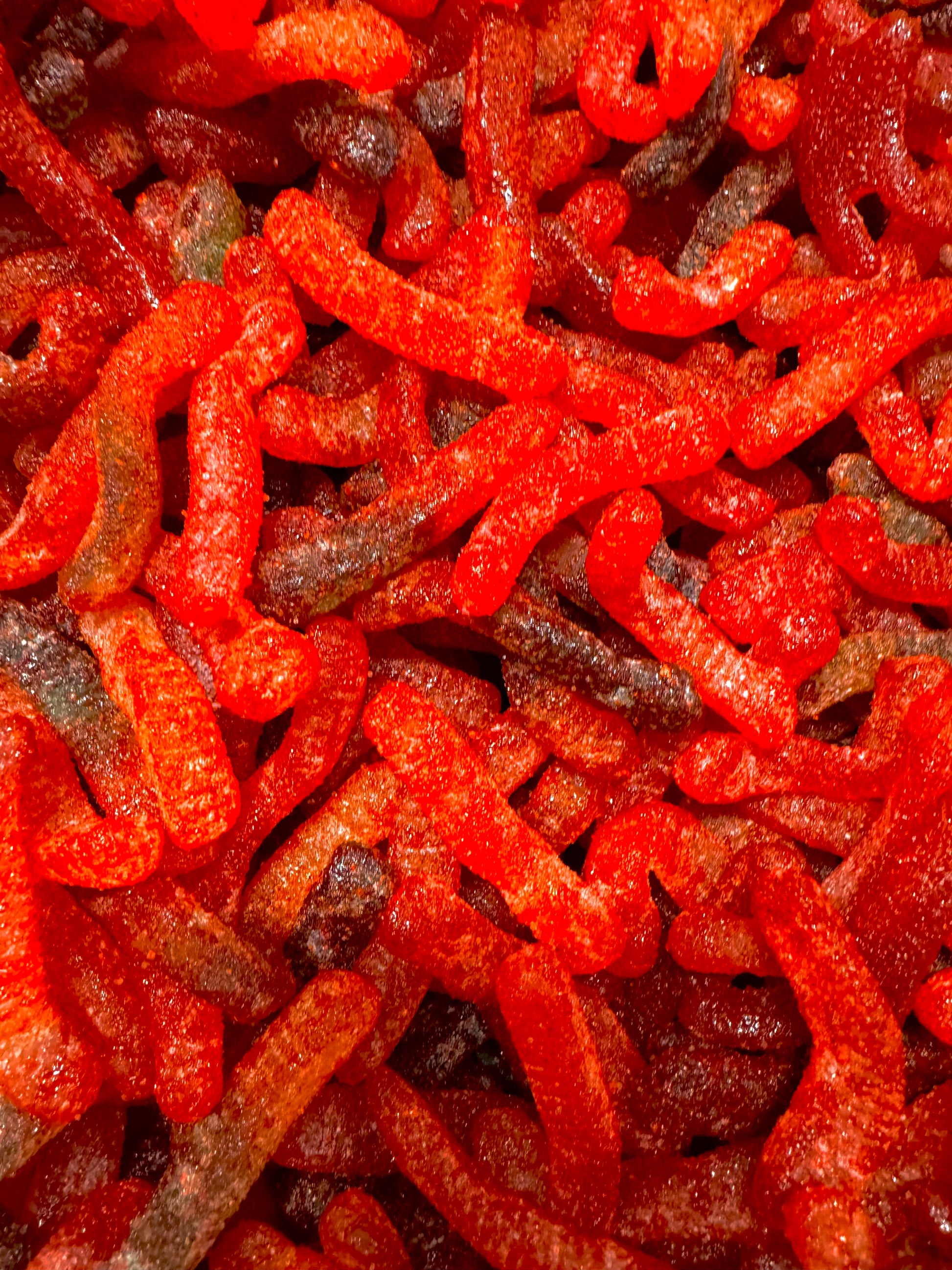 Slimy Worms are the classic, chewy worm-shaped gummies covered in our own chamoy and dusted with our own chili powder, giving each bite a sour, sweet, and spicy twist. The familiar gummy texture and fruity flavor combine with the bold heat of our chili, creates a fun and exciting treat for candy lovers who enjoy a little extra zing. Our Slimy Worms are the perfect snack for those who crave a classic gummy with a fiery flair.