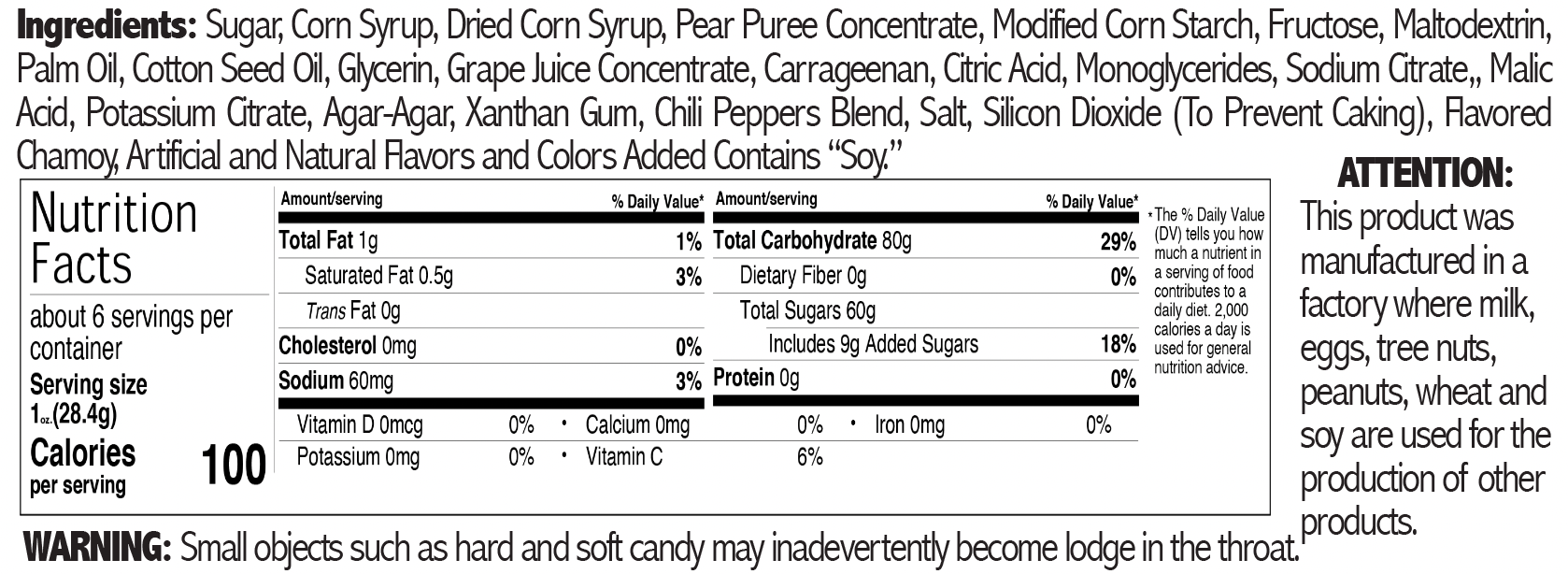 Smushers—the gummies with an explosive fruity middle that’s sure to surprise your taste buds! These chewy treats feature a soft outer layer with a burst of vibrant, tangy fruit filling in the center, offering a delightful contrast of textures and flavors. Covered in our own chamoy and dusted with our own chili powder, each bite brings a sweet, sour, and spicy combination that’s irresistible. A fan favorite for those who love bold, adventurous snacks. Our Smushers deliver the perfect balance of fruity sweetness and fiery heat in every bite.